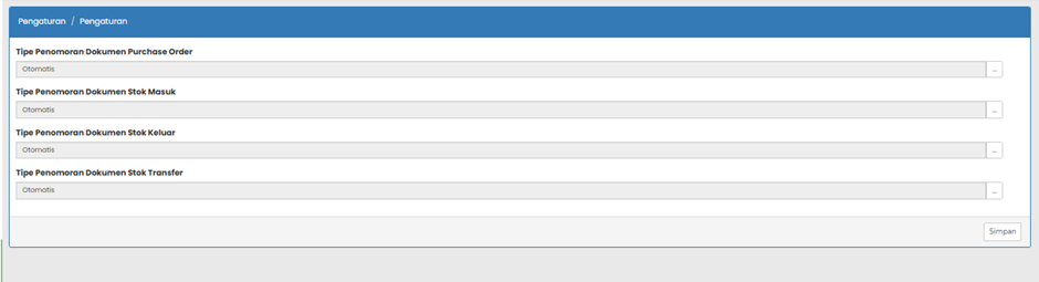 - Tipe Penomoran Dokumen Stok Masuk