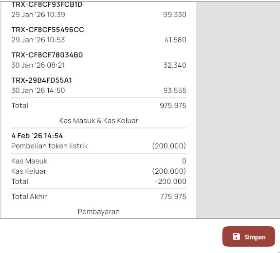 Tombol rekap sekarang untuk melakukan pe rekapan transaksi pada hari itu seperti contoh gambar dibawah ini klik simpan untuk me rekap