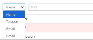 fitur pencarian untuk menemukan data pelanggan secara spesifik. Pilih kategori filter pada menu drop-down (seperti Nama), kemudian ketikkan kata kunci yang dicari pada kolom Cari.