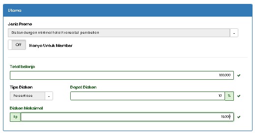 - Pilih nilai diskon nya sesuai pilihan tipe diskon