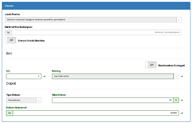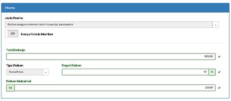- Isi diskon maksimal yg di dapat (bisa dikosongkan)
