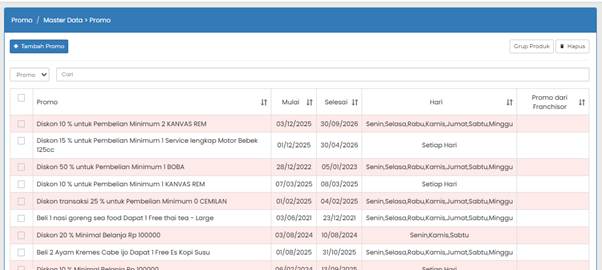 - Promo, mulai, selesai, hari, promo dari franchisor