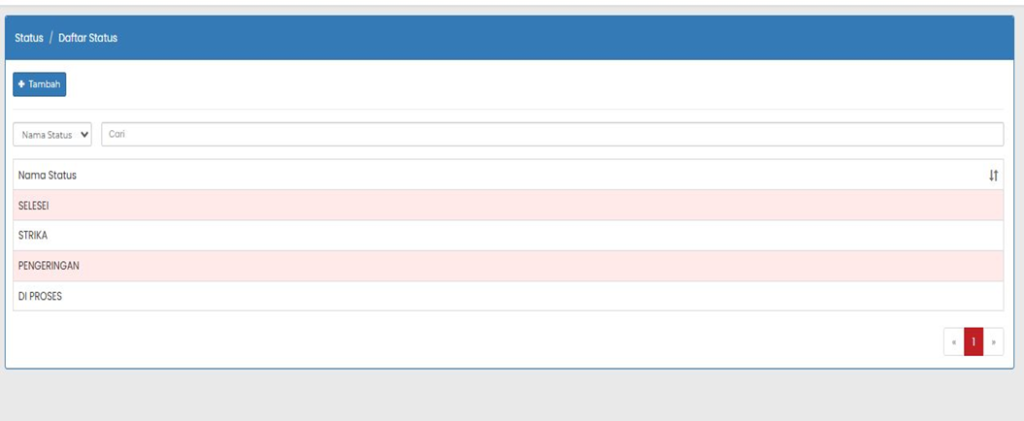 Pada tabel Nama Status, ditampilkan seluruh status yang telah dibuat, seperti: