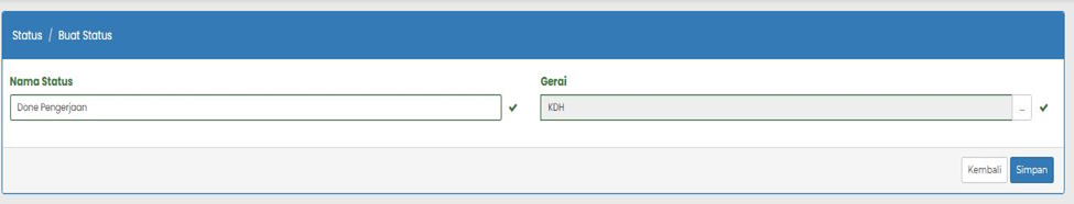 Klik tombol Simpan untuk menyimpan data status yang telah diisi ke dalam sistem.