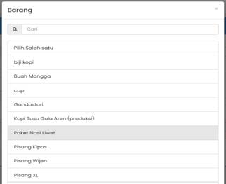 Pilih barang dari daftar master barang yang tersedia di gerai tersebut.